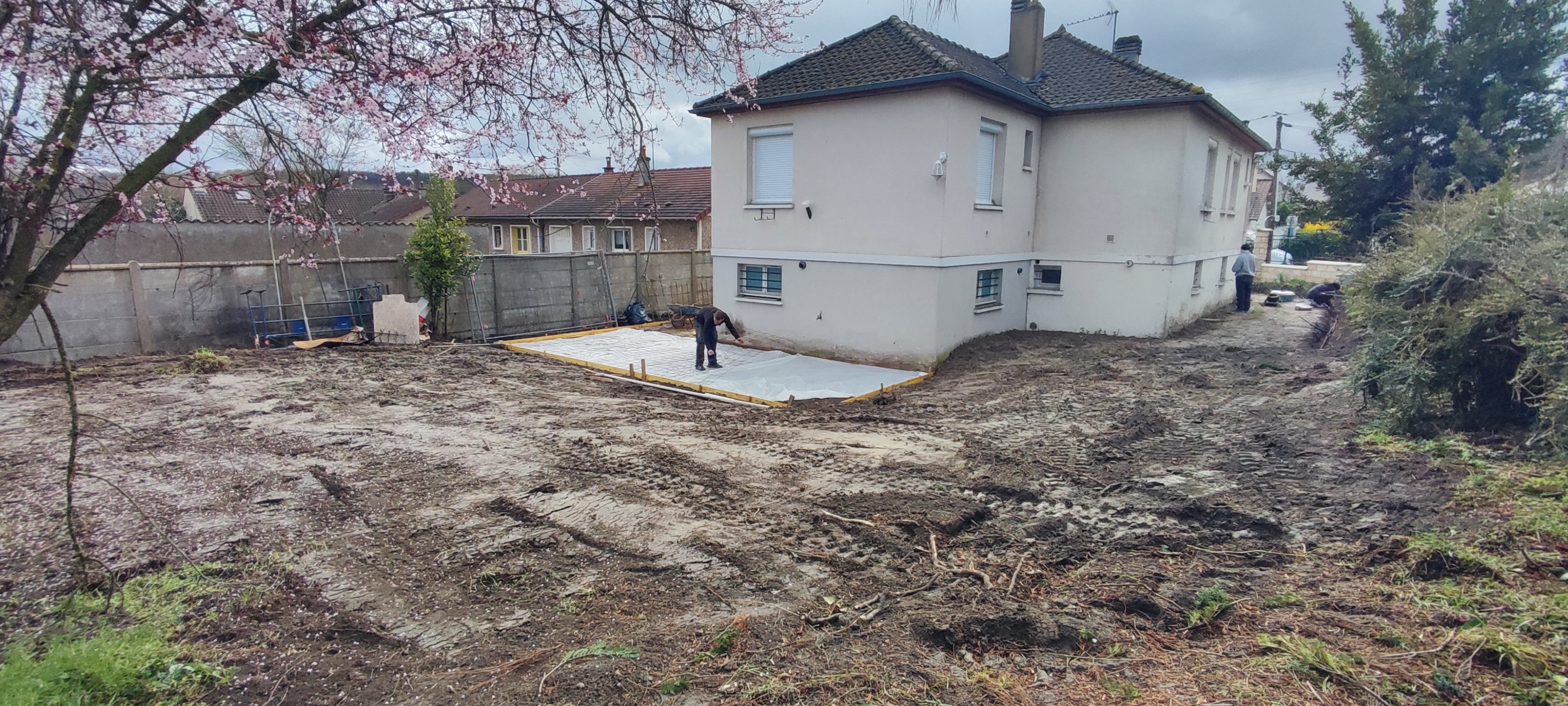 Préparation de terrain, fondations pour extensions et décaissement pour piscines à Poissy.